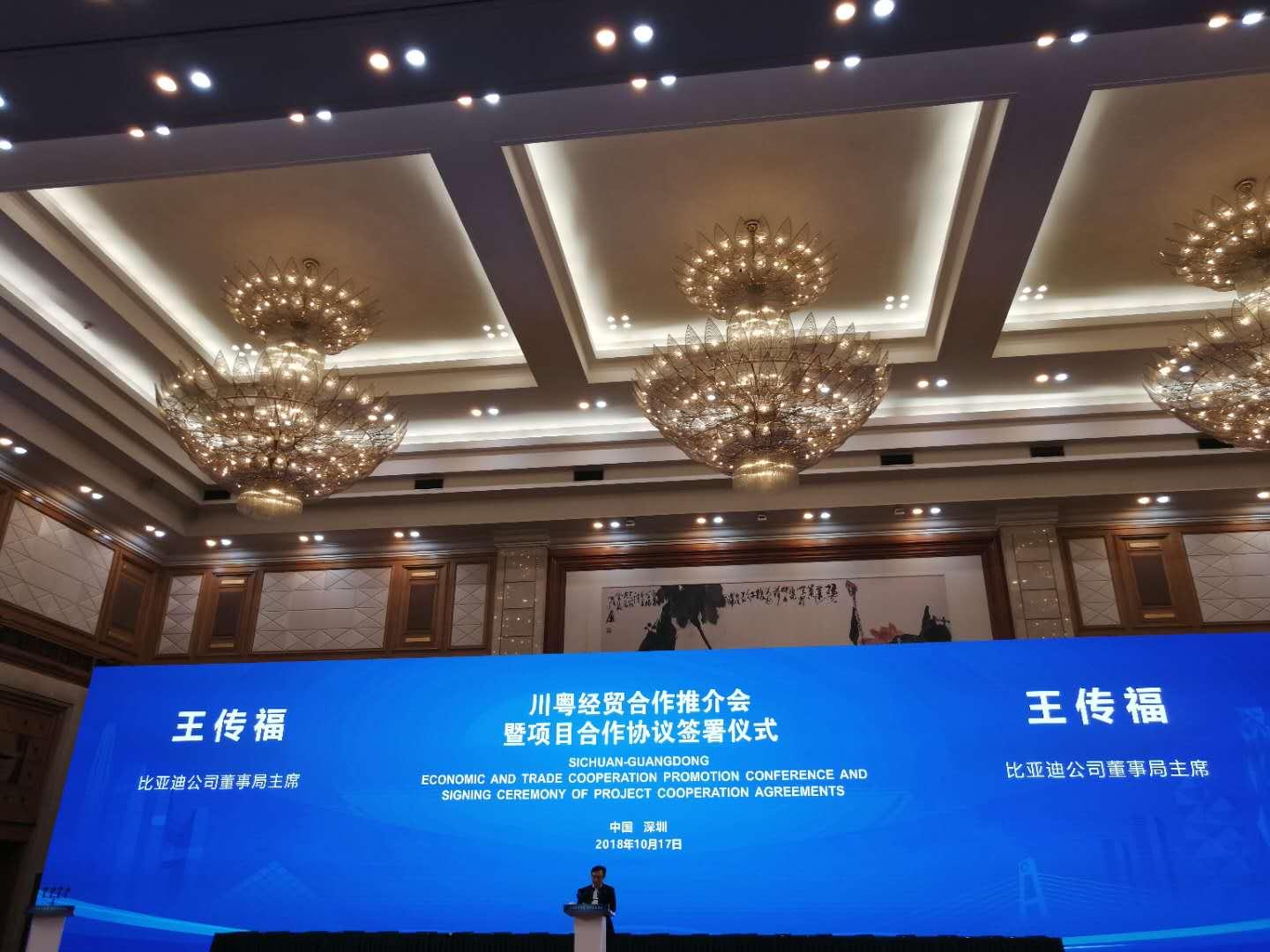 比亚迪股份有限公司董事局主席王传福从分享了对四川区域战略地位、发展机遇和发展优势的评价,以及与四川开展合作的体会和愿景。