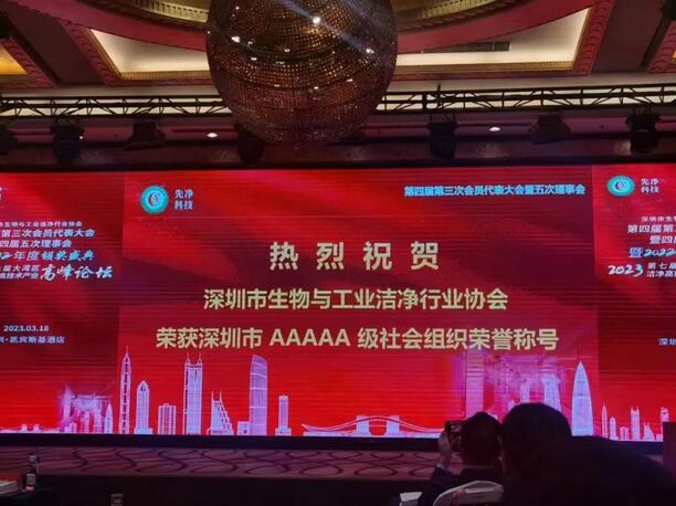鸿发国际新闻与会员部部长肖辉主持接下来的环节,她隆重向大家报告了协会一件里程碑重要事件:那就是在各级政府部门的领导下,在各位会员企业的鼎力支持下,2022年鸿发国际获得深圳市民政局最高荣誉“AAAAA级社会组织”,这是对协会过去工作的肯定,也是对未来工作的鞭策!是对所有洁净人的认可,会场响起了热烈的掌声!