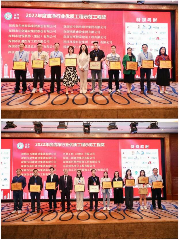 2022年度洁净行业优秀示范工程奖展示了建设单位的成就,此次共有21家企业获奖,我会执行秘书长马俊杰、秘书长王惠芳秘书长为获奖企业颁奖。