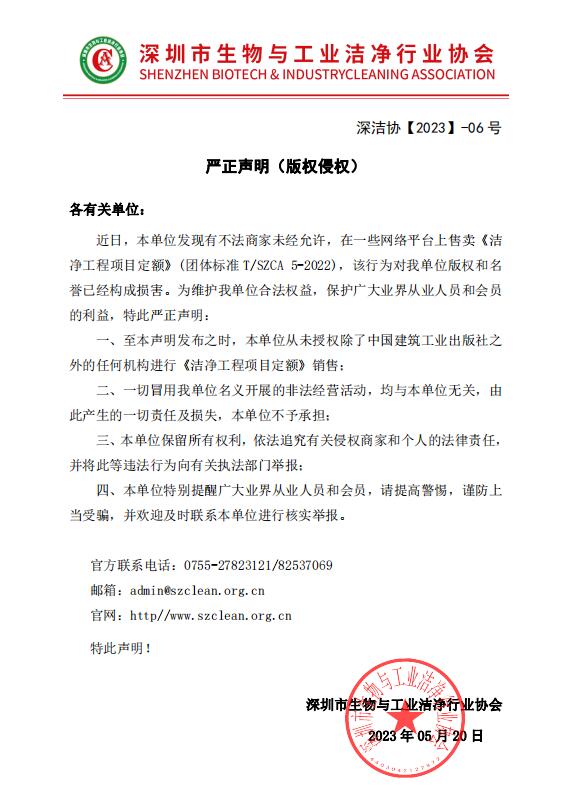 深圳市洁净行业协会负责