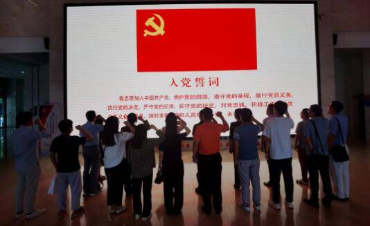在支部书记申静同志的带领下,同志们庄严地举起右手,重温入党誓词。