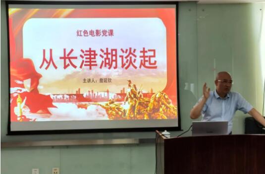 中共深圳市委党史文献研究室,现任文献处处长、副研究员詹延钦老师的观影党课《从长津湖谈起》,带领大家重温影片片段、老兵回忆片段、党和人民不会忘记、伟大的抗美援朝精神;党课最后,从党员同志们高昂的国歌声中、激动的表情里,可见课程内容给党员同志带来的内心冲击。