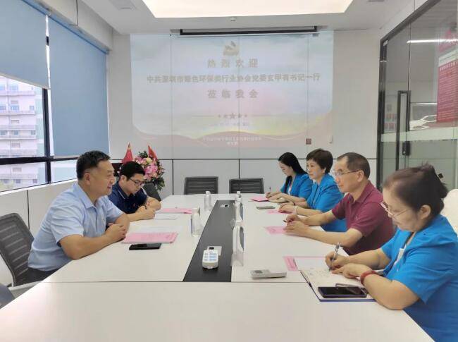 10月12日下午,中共深圳市绿色环保类行业协会联合党委副书记玄甲有、中共深圳市绿色环保类行业协会联合党委组织员熊林锋一行莅临我会调研党建工作开展情况,我会会长林正刚、支部书记申静率领支部委员及部分党员热情接待并进行座谈,会议由支部积极分子、我会副秘书长肖辉主持。