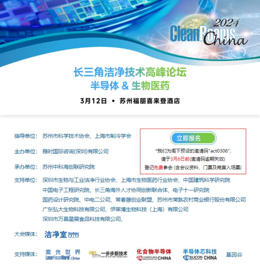 香港《洁净室》杂志社即将于苏州盛大举办“长三角洁净技术高峰论坛暨产品展示”!