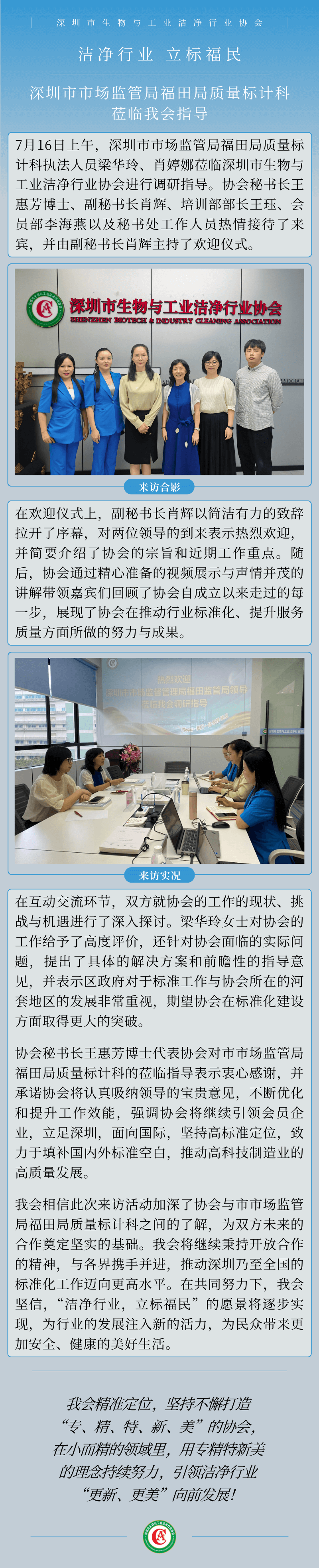 深圳市市场监管局福田局质量标计科莅临我会指导!