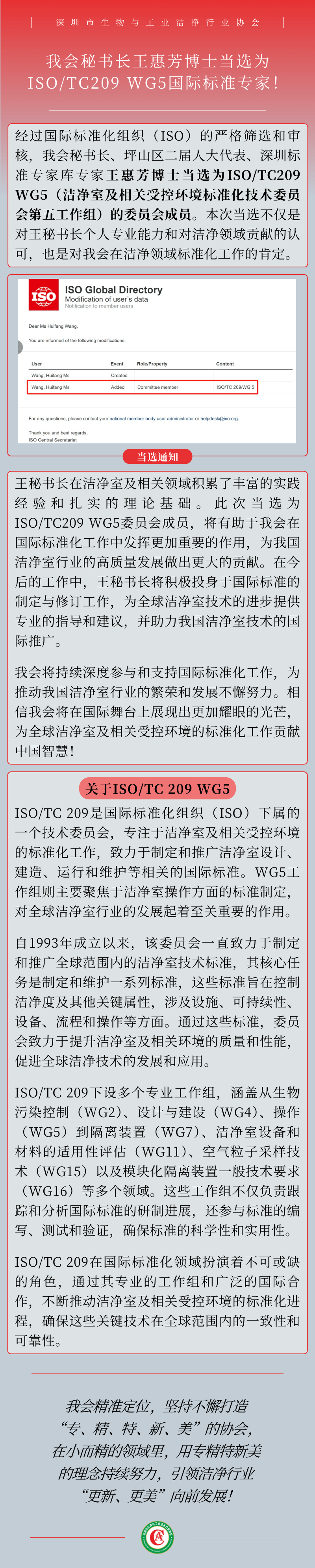 【喜讯】我会秘书长王惠芳博士当选为ISO/TC209 WG5国际标准专家!
