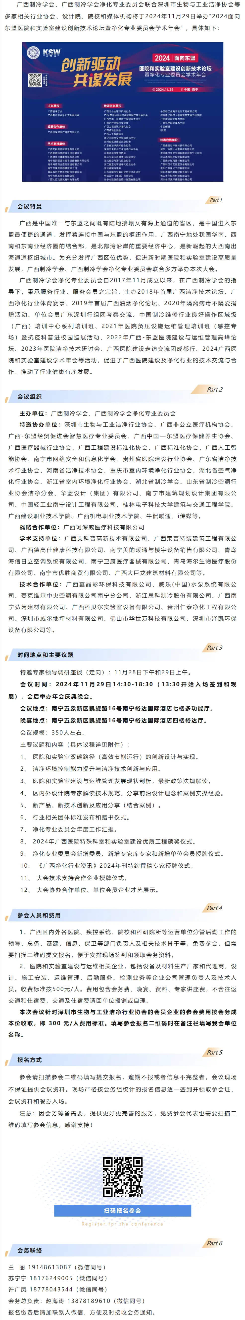 【活动邀请】我会协办的“2024面向东盟医院和实验室建设创新技术论坛暨净化专业委员会学术年会”即将举行!