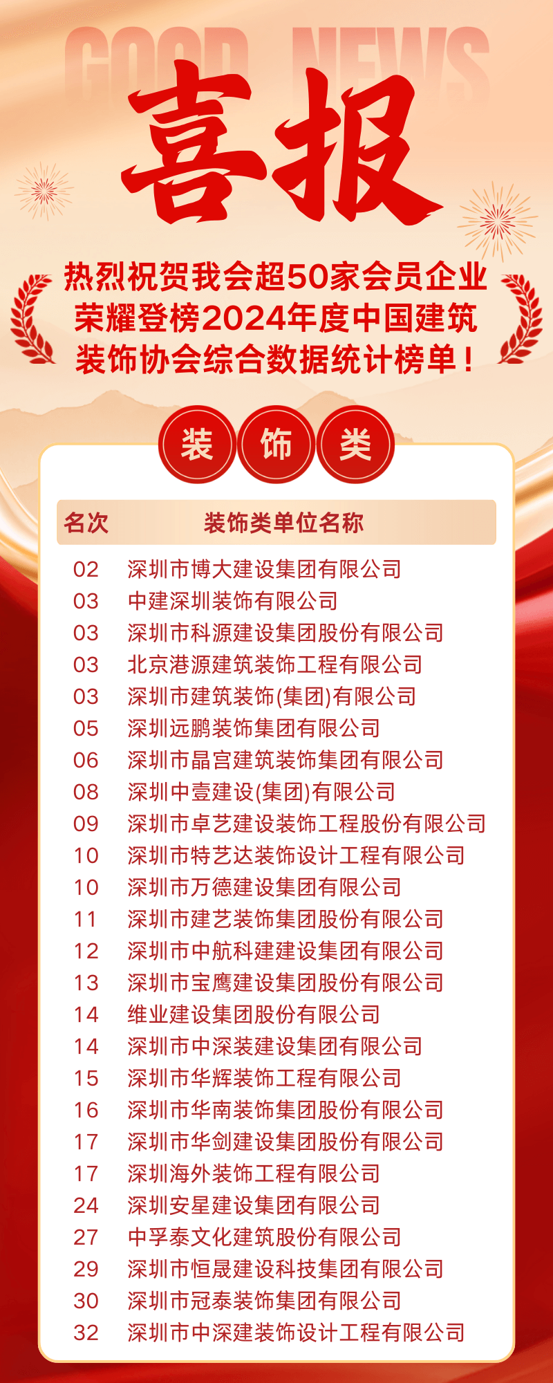 洁净会员实力担当!我会超50家会员企业荣耀登榜2024年度中国建筑装饰协会行业综合数据统计榜单