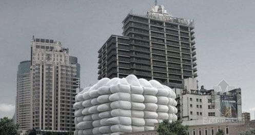 “泡沫建筑”是由白色抗菌尼龙制成的可充气结构,将一层可膨胀抗菌尼龙材料覆盖在普通办公大楼上。3GATTI工作室指出,这是对普通、老式无吸引力建筑的革新设计,不仅改变了上海建筑风格,同时使这座办公大楼处于无菌状态。